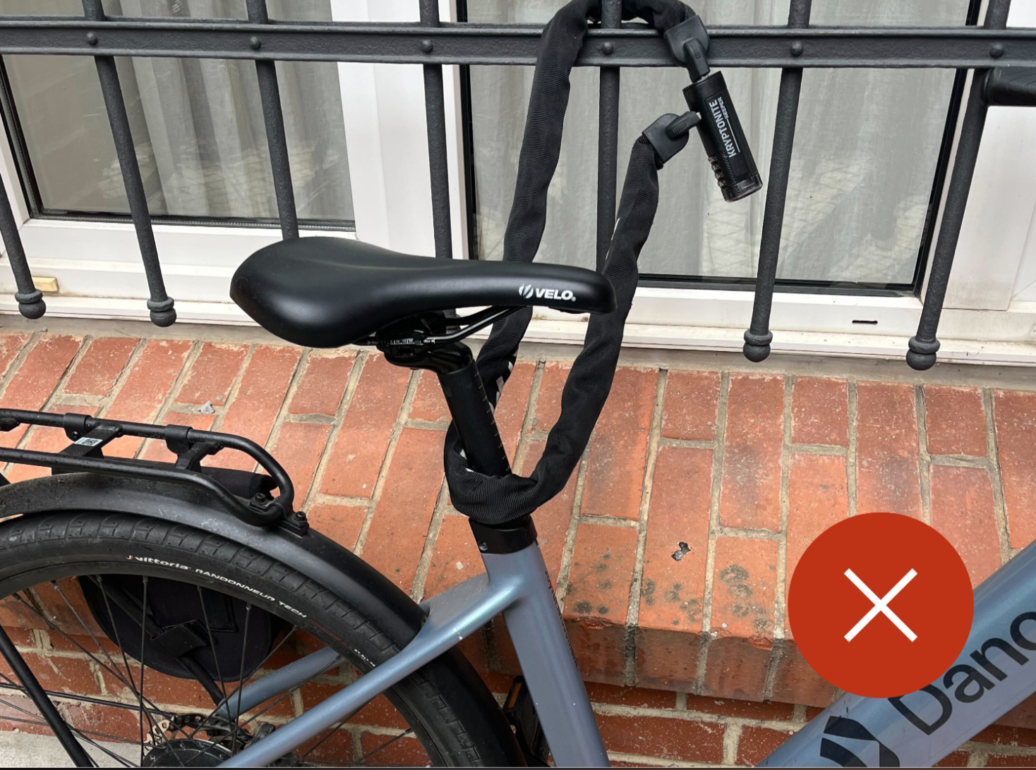Lege das Schloss nie nur um den Sitz. So bietet das Schloss keinen Schutz.