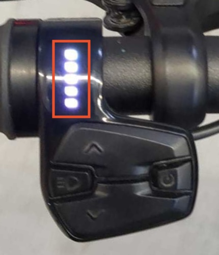Surveillez le niveau de votre batterie à l’aide du contrôleur de guidon. Selon le modèle de contrôleur, vérifiez les cinq voyants ou l’indicateur de niveau de batterie.